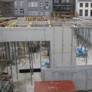 Construction of a residential building consisting of 14 apartments, commercial surfaces on the groundfloor and 2 underground parking levels.