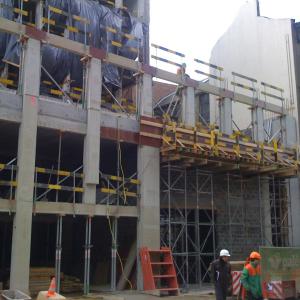 Bouw van een kantoorgebouw met commerciële ruimtes op het gelijkvloers.