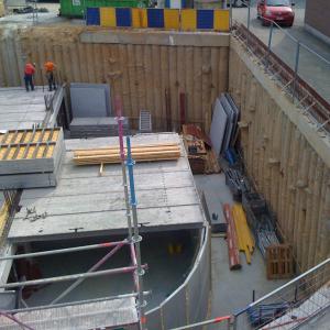 Construction of a residential building consisting of 14 apartments, commercial surfaces on the groundfloor and 2 underground parking levels.